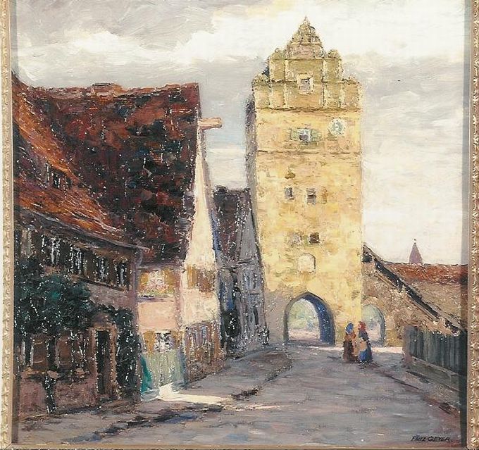 Geyer, Fritz (*1873 in Nürnberg) "Stadttor mit Turm - wohl Nördlingen" sign. u.r. Verfügbarkeit, Preis und Größe nur auf Anfrage.