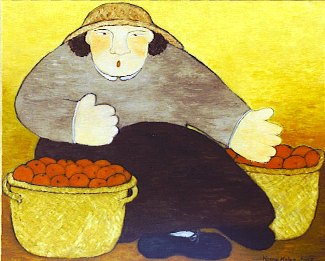 Holze, Hanne "Apfelsinenernte" Öl auf Leinwand. Größe: 100 x 81 cm sign. u.r. Preis: 2.900,00 Euro Menschen und Geschichten vom Leben: Weitere Informationen zu Hanne Holze