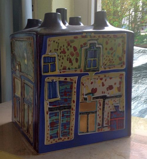 Porzellan Objekte Künstler: Hundertwasser Hersteller: Rosenthal Das Objekt. "Blumenhaus" ist von Fr. Hundertwasser aus dem Jahre 1983 Das Objekt ist limitiert Nr.194/500 Sign. mit Zertifikat. Preisvorstellung: 2700€