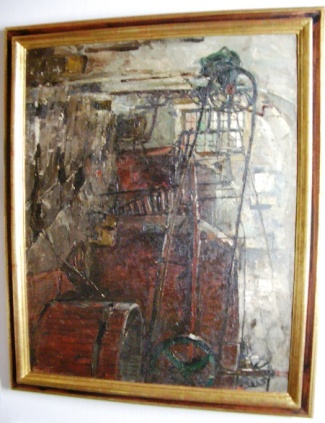 Hummel, Theodor "Im Maschinenraum mit Treibriemen" mit Signatur Verfügbarkeit, Preis und Größe nur auf Anfrage.
