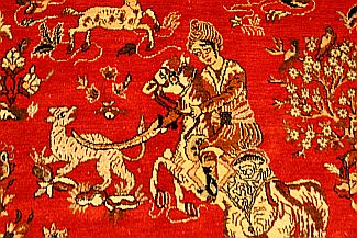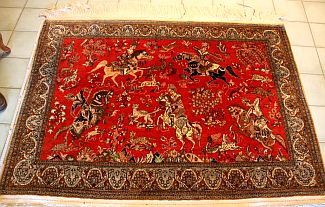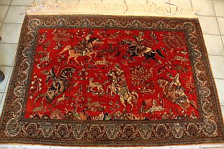 Ghom , Seiden- Ghom, Perserteppich - nur als Wandteppich benutzt - aus Akademiker Haushalt fleckenfrei - Top Zustand Grösse 113 x 159 cm (ganz genau aber ohne Fransen = 113,5 x 158,5 cm) Preis auf Anfrage
